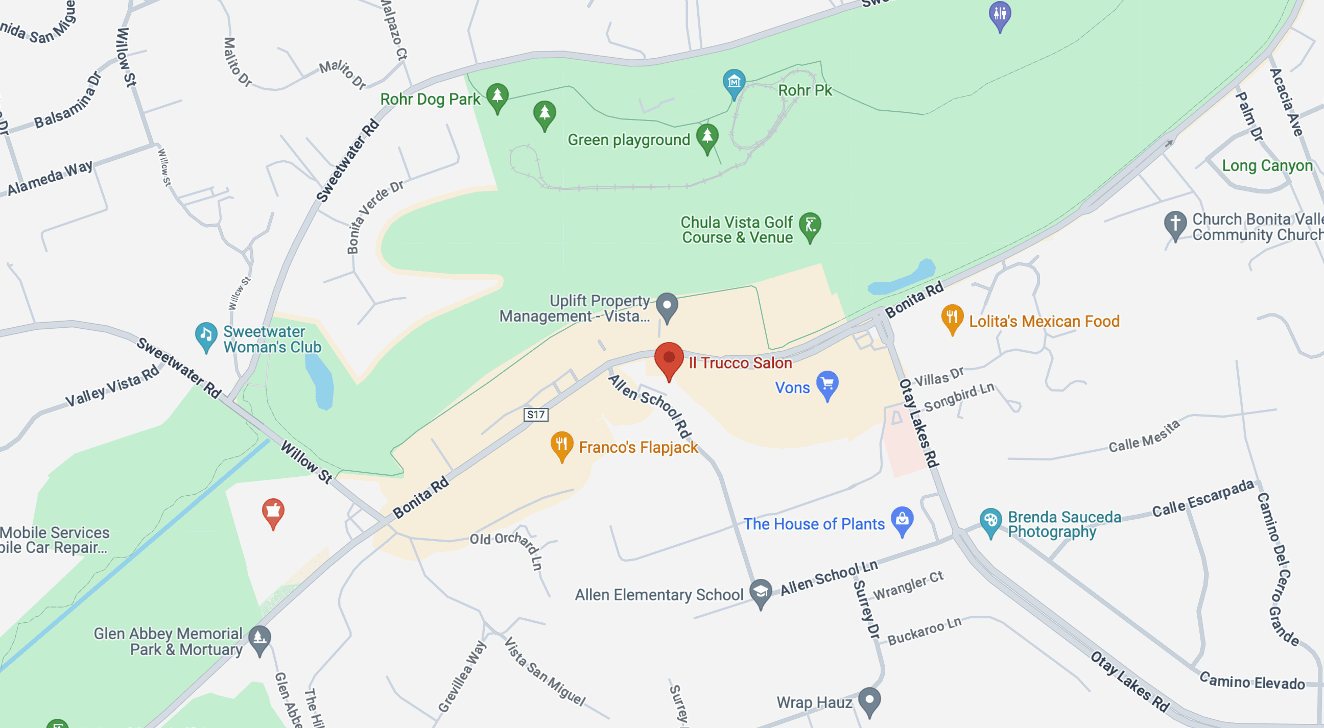 Find me at Il Trucco Salon in Bonita, right on the Chula Vista border, easy to get to from anywhere in South Bay. Proudly serving clients throughout San Diego County, including Clairemont, La Jolla, Coronado, Mission Valley, Santee, and surrounding areas.